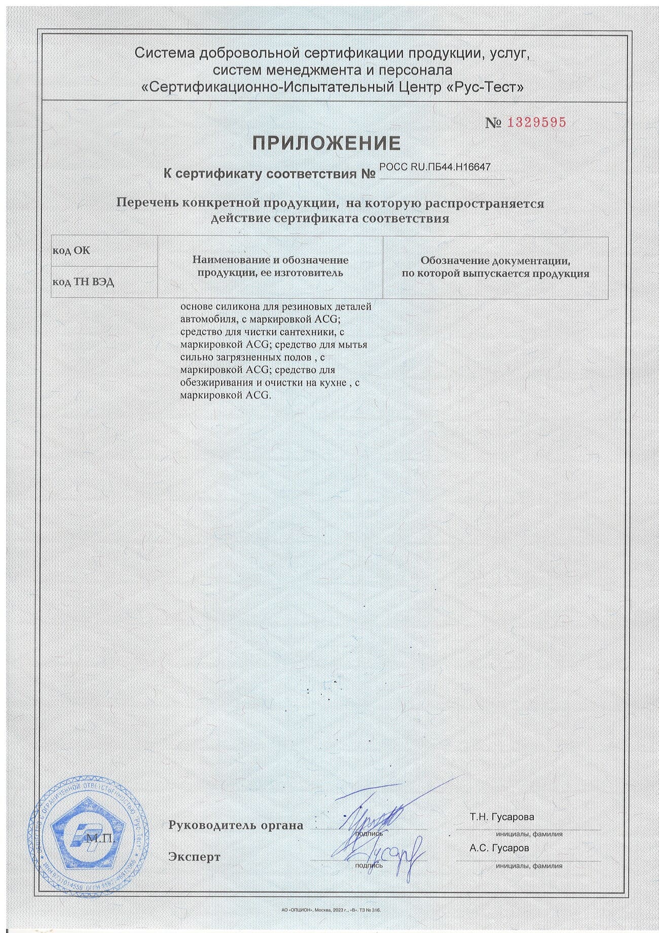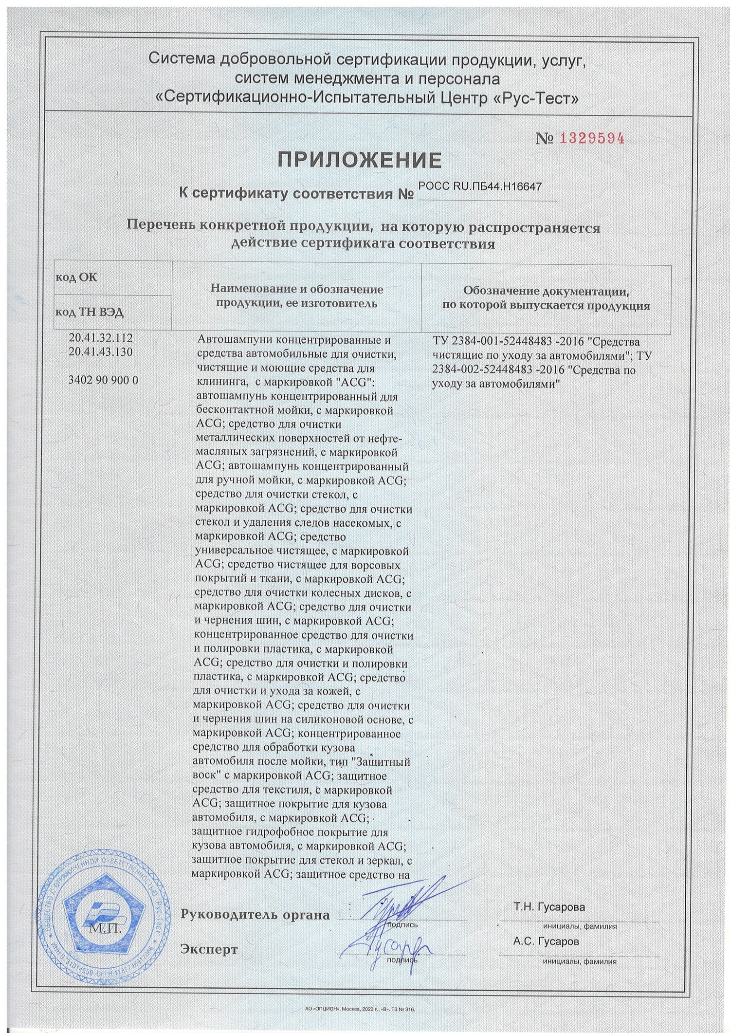 Приложение №1329594 к Сертификату соответствия – документ, подтверждающий соответствие продукции требованиям качества и безопасности, установленными для нее действующими стандартами и правилами (ГОСТ, ГОСТ Р, ГОСТ Р МЭК, ТУ, Технический регламент и пр.).
